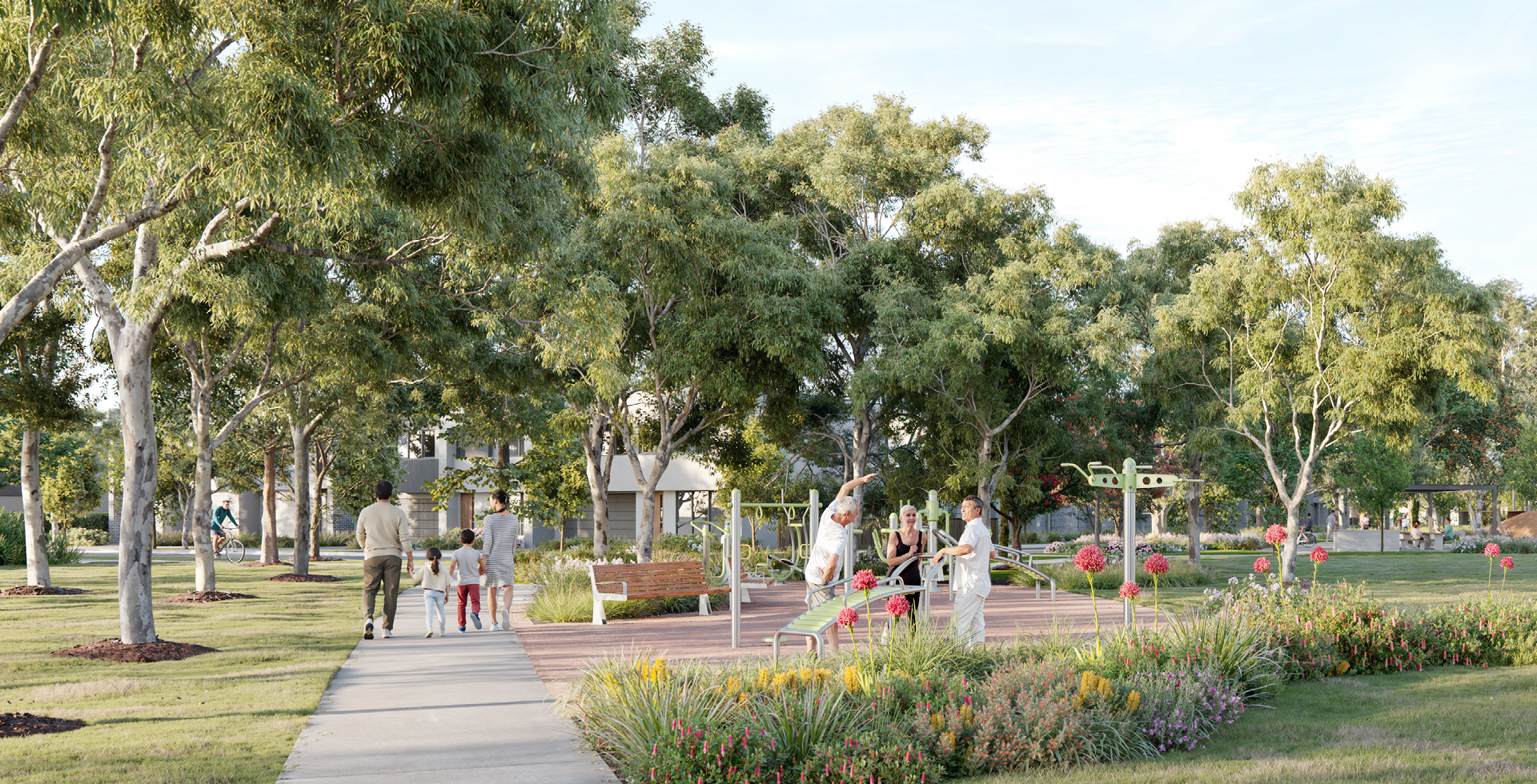 The masterplan includes provision for a neighbourhood centre, including a supermarket and speciality retail stores (subject to Council approval). There is also a local neighbourhood park running through the centre of the community.